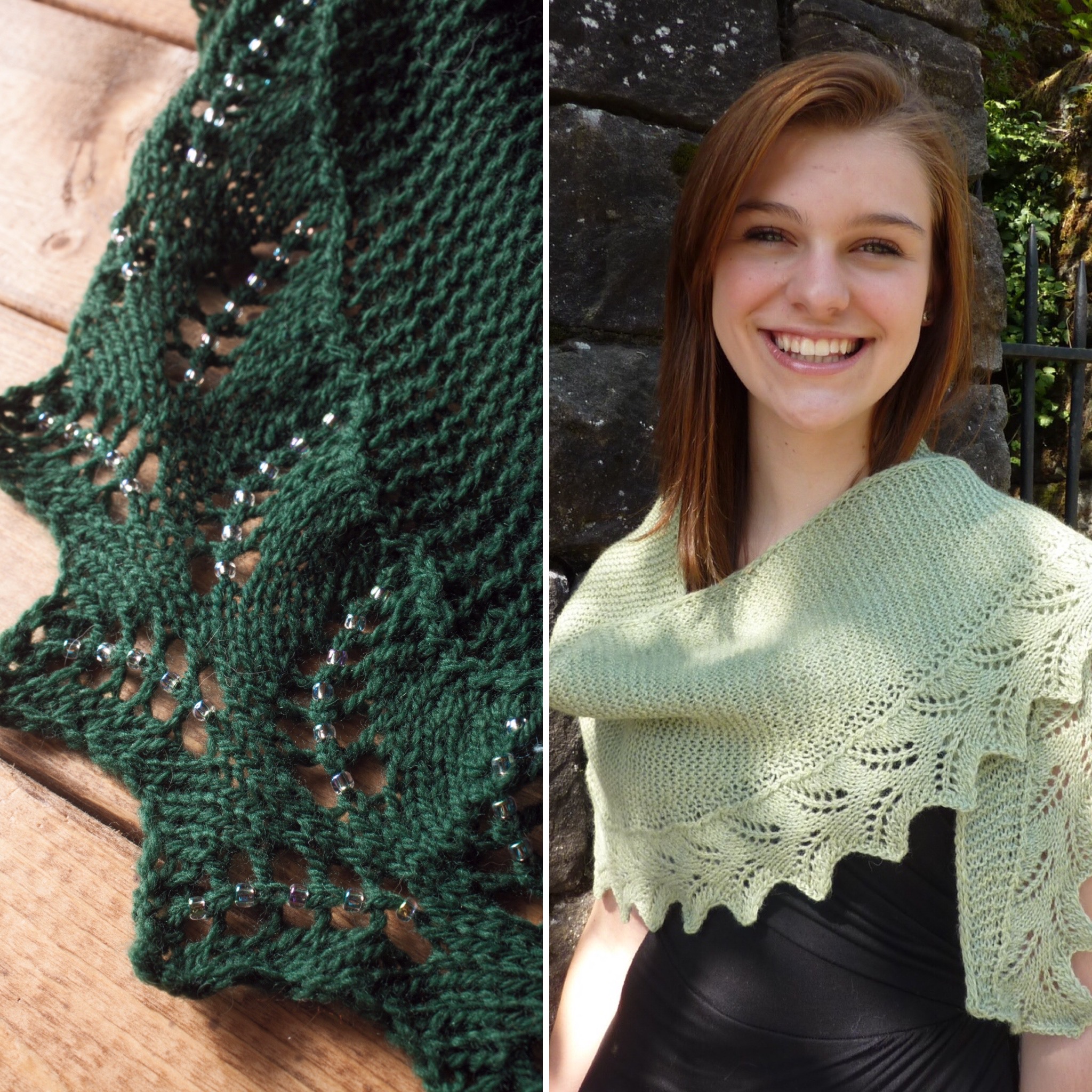 Four pattern repeats done on my Fern Shawlette. The beads are very subtle here, but they do show up better in real life.