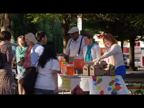 If you don’t blink, you can see me walking by in my Garland Shawl! So many hours for a tiny bit of screen time.