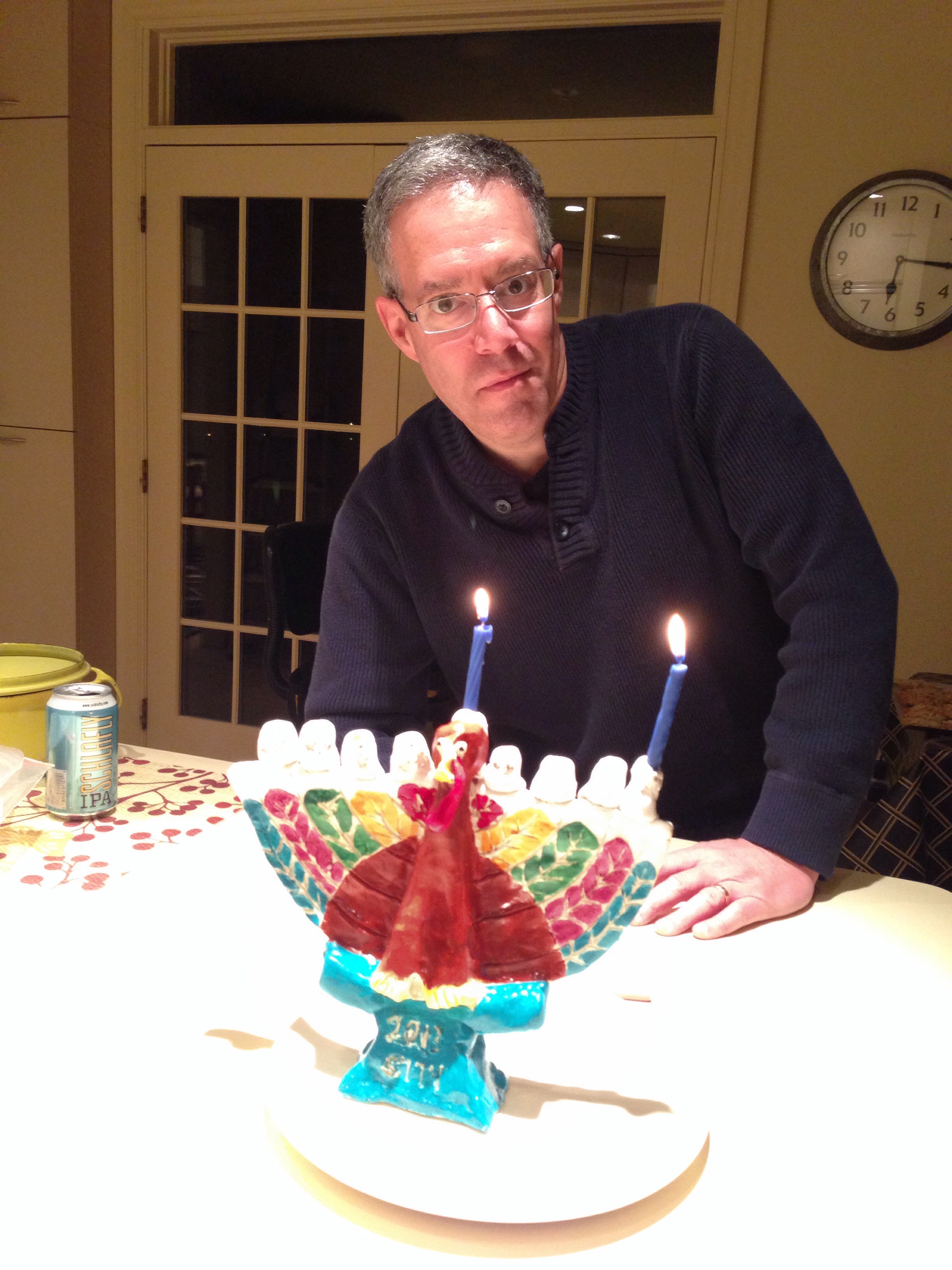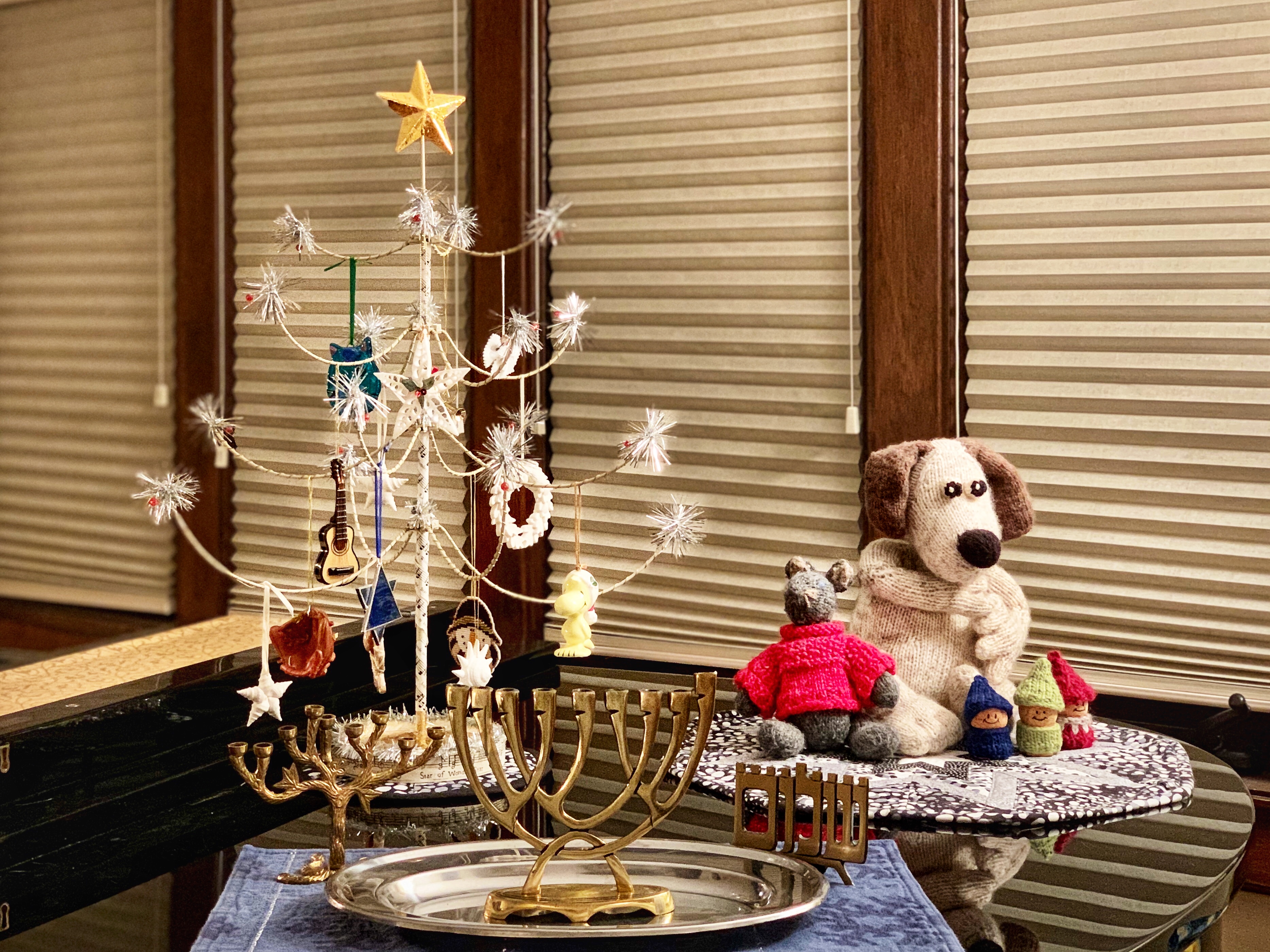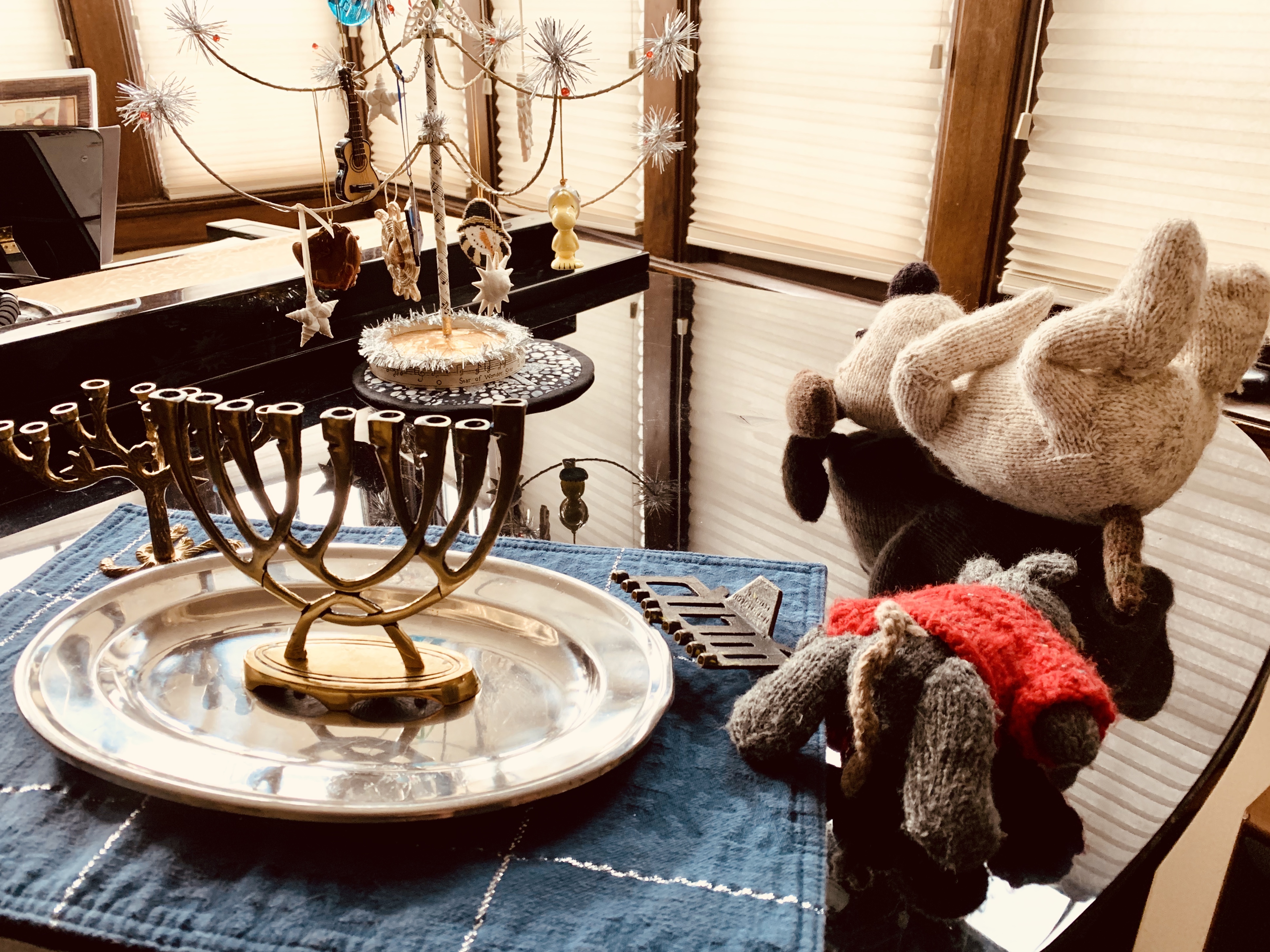 I got brave and put up our tiny tree and menorah, but I hedged my bets with Calvin. I wasn’t sure if he could be trusted with decorations.