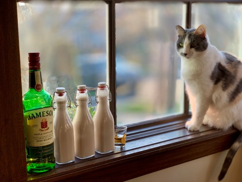 9 oz Jameson’s Irish whiskey (original recipe calls for a cup, but 9 oz fills the bottles just a little better, and yum)