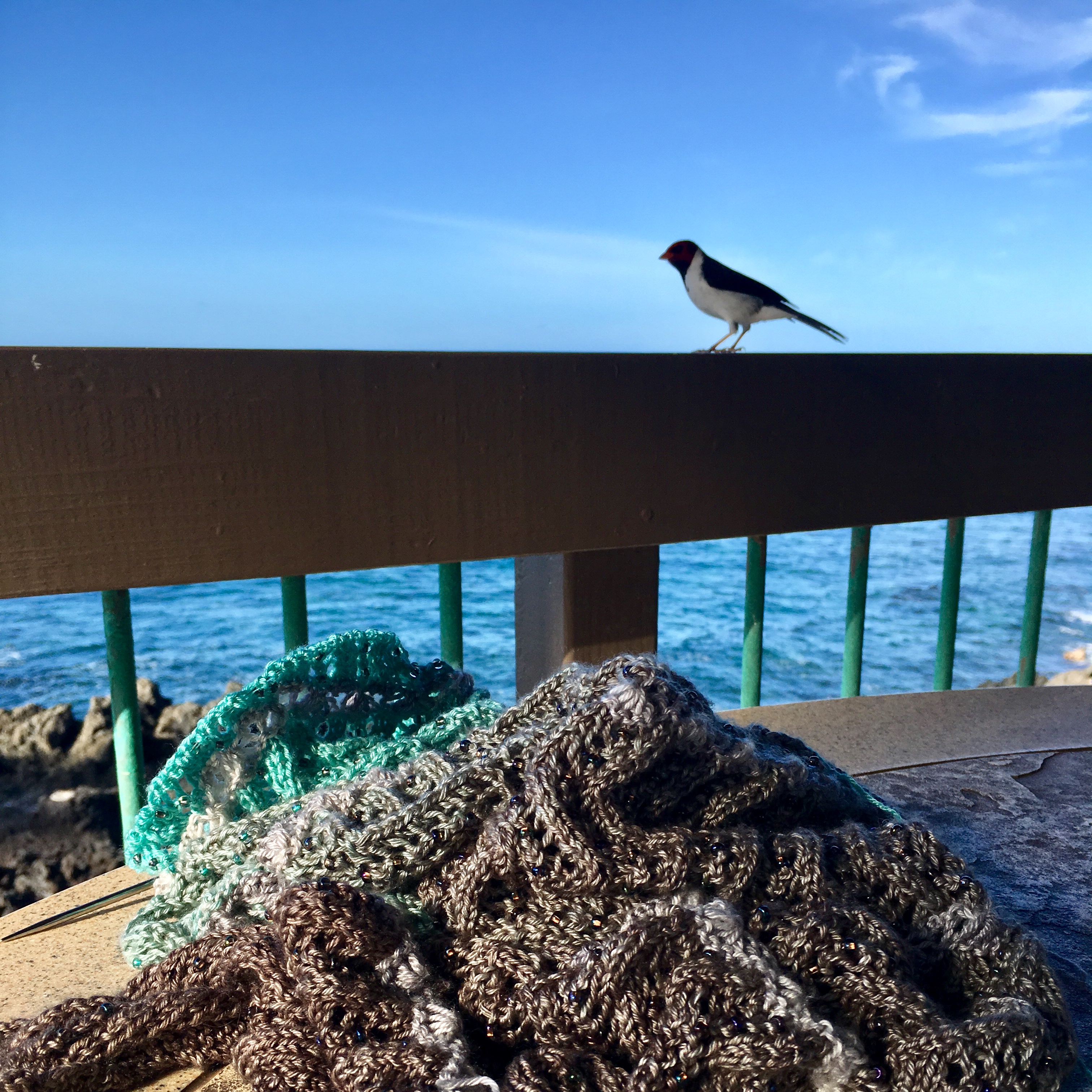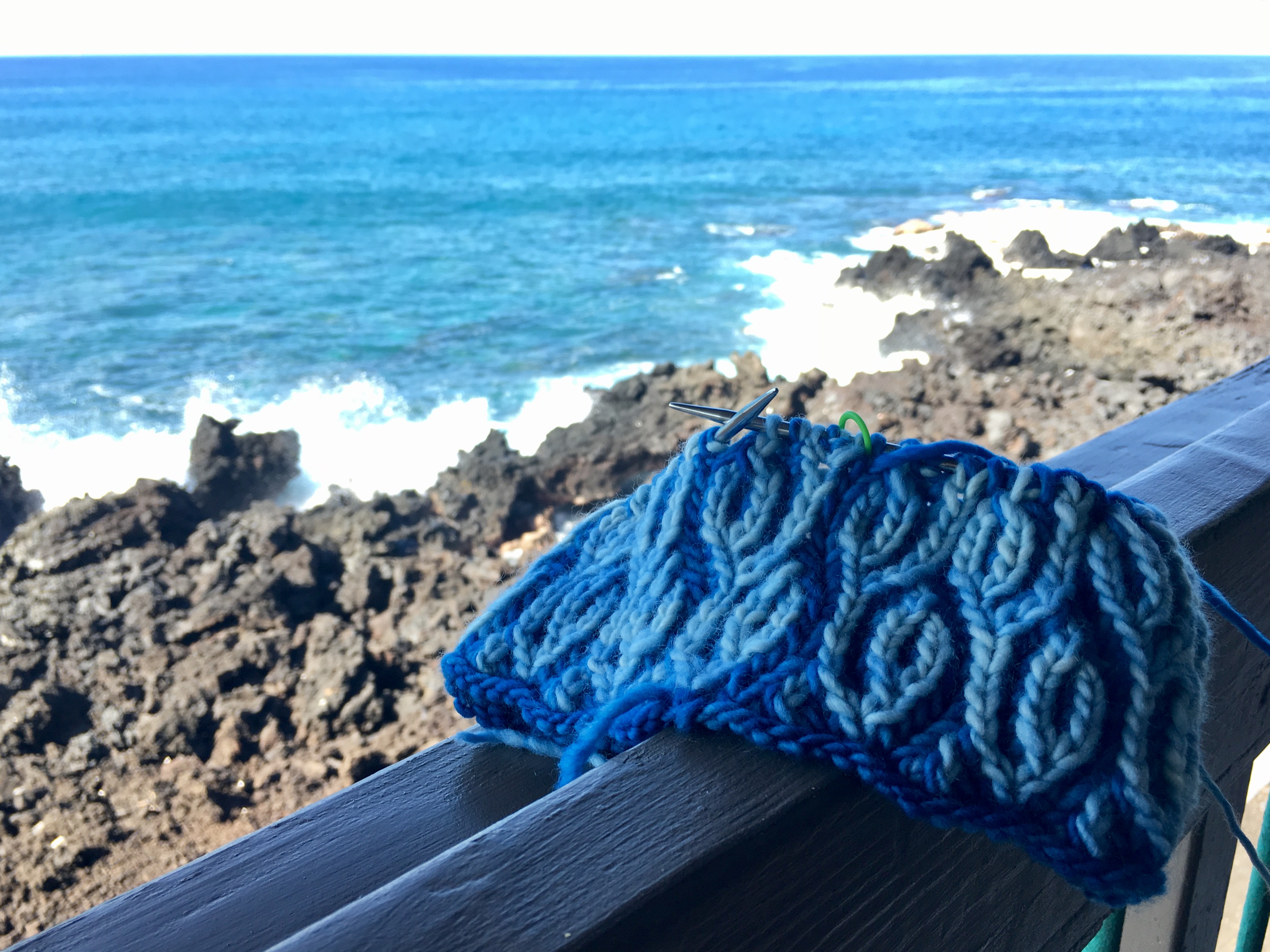 Of course there was knitting on the lanai. Heres a sneak peek at my latest design project.