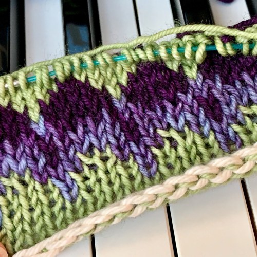 The final project in the book is actually two projects. You can knit Coffee Breakers as either a cowl or a shawl. (Working name was Surf’s Up)