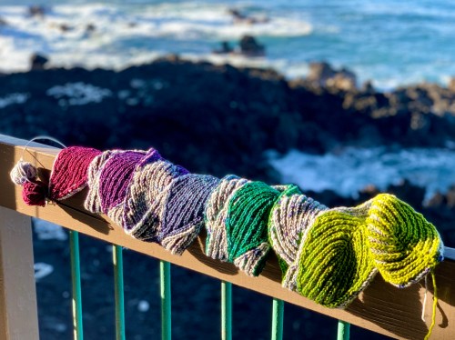 Of course there was knitting on the lanai. Heres a sneak peek at my latest design project.
