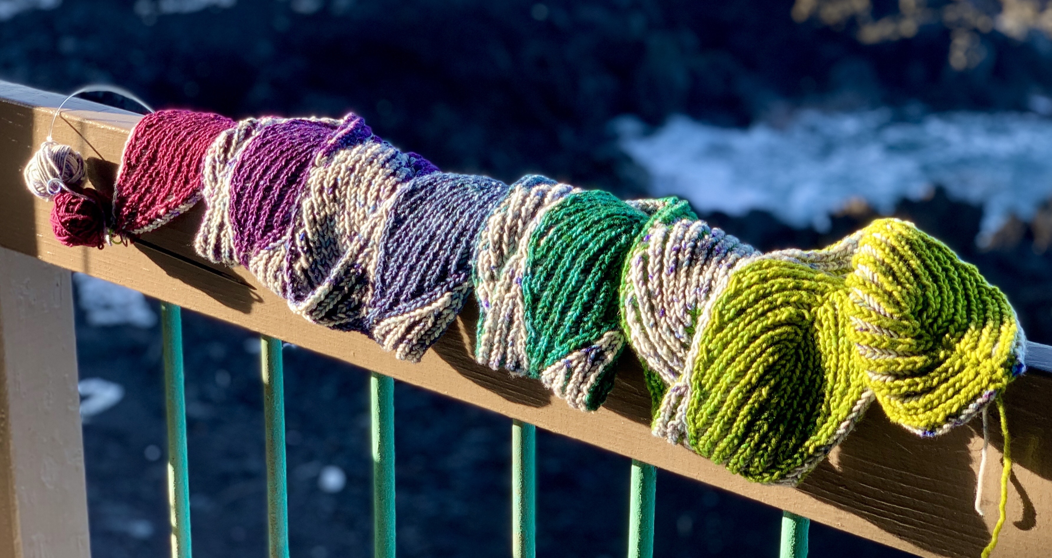 The Seafoam Latte Scarf combines increases and decreases with a syncopated crest of the wave. The working name for this piece was Beachcomber. I do love the thought of Seafoam Lattes, though.