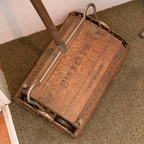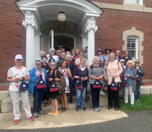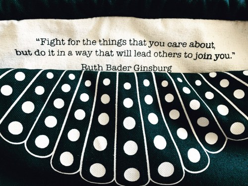 This RBG-themed bag currently holds the beginnings of another Bonnie Isle Hat. I need to get a sample set up for class. The bag is from Nerd Bird Makery, and it has two pockets on the back wall inside.