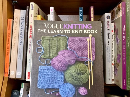 This cat-themed bag from Grace’s Cases holds one of my current projects, the beginnings of an Embellishment Cowl. It’s a class sample. I love that the colors on the bag coordinate with the yarn. A happy accident?