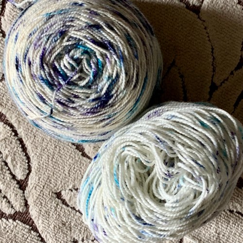 The other difference between these two speckled yarns? The older one is whiter, and the newer one has a more natural/cream background. This isn’t a knock on the yarn; dye lots can vary quite a bit. It’s only when you have your heart set on a particular vision that it becomes problematic.