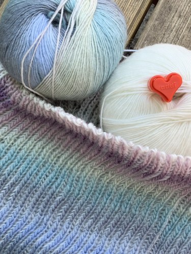 I’m so happy with my current WIP (work in progress). It’s brioche knitting with Knit Picks Chroma Fingering in Drawing Room and Bare. I love the gentle color shifts in Drawing Room. This was yarn I found in my small stash.