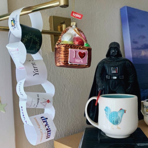 I’m making a paper chain with the yarn labels from this year’s projects; it’s a tidy and visual way to remember what I’ve done. Ten projects by the first week of April feels pretty good.