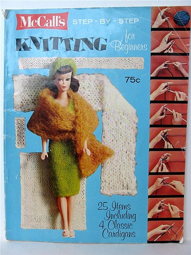 I was wondering just what kind of skating outfit was in that Knitting for Barbie canister, so I googled “knit 2 piece barbie skating outfit” and found this pattern page on Ravelry. It’s a 1962 pattern for a sweater and skinny pants. There’s a picture of the printed pattern, and more googling found a copy of the pattern posted on an old blogspot blog.