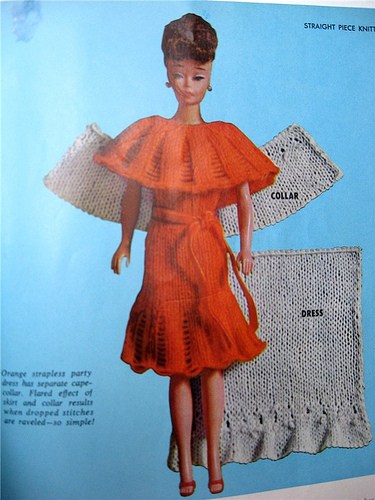 The sash is long gone. I found this dress, along with some other treasures, at Mom’s house. The other items are from more doll clothing booklets, and I have those, too. Check out what a fashionably dressed Barbie was wearing in the late ’60’s and early ’70’s. Stylish sheath dresses, worn with negative ease on very curvy Barbie.