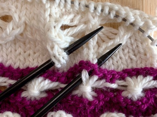 The only thing I didn’t like? The join between the cable and the needle. There was a distinct gap where the swivel cord came into the brass connector. It wasn’t a big deal, until I started designing with a lot of fancy stitches that required multiple yarn overs. It was hard to scoot my stitches and yarn overs from the cable onto the left needle so I could work them with the right needle. That eventually drove me to another needle, which turned out to be the Hiya Hiya stainless (regular point, rather than sharp). It’s nice to have a variety of needles for different projects; each needle has a purpose.