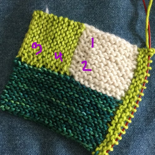 My favorite is the one that takes the least planning and effort. Yep, that’s me; git ‘er done. It does show a little bit more in garter stitch knitting, but I think I prefer that to having a loose stitch on the outside edge. I made a video for my log cabin knitting classes.