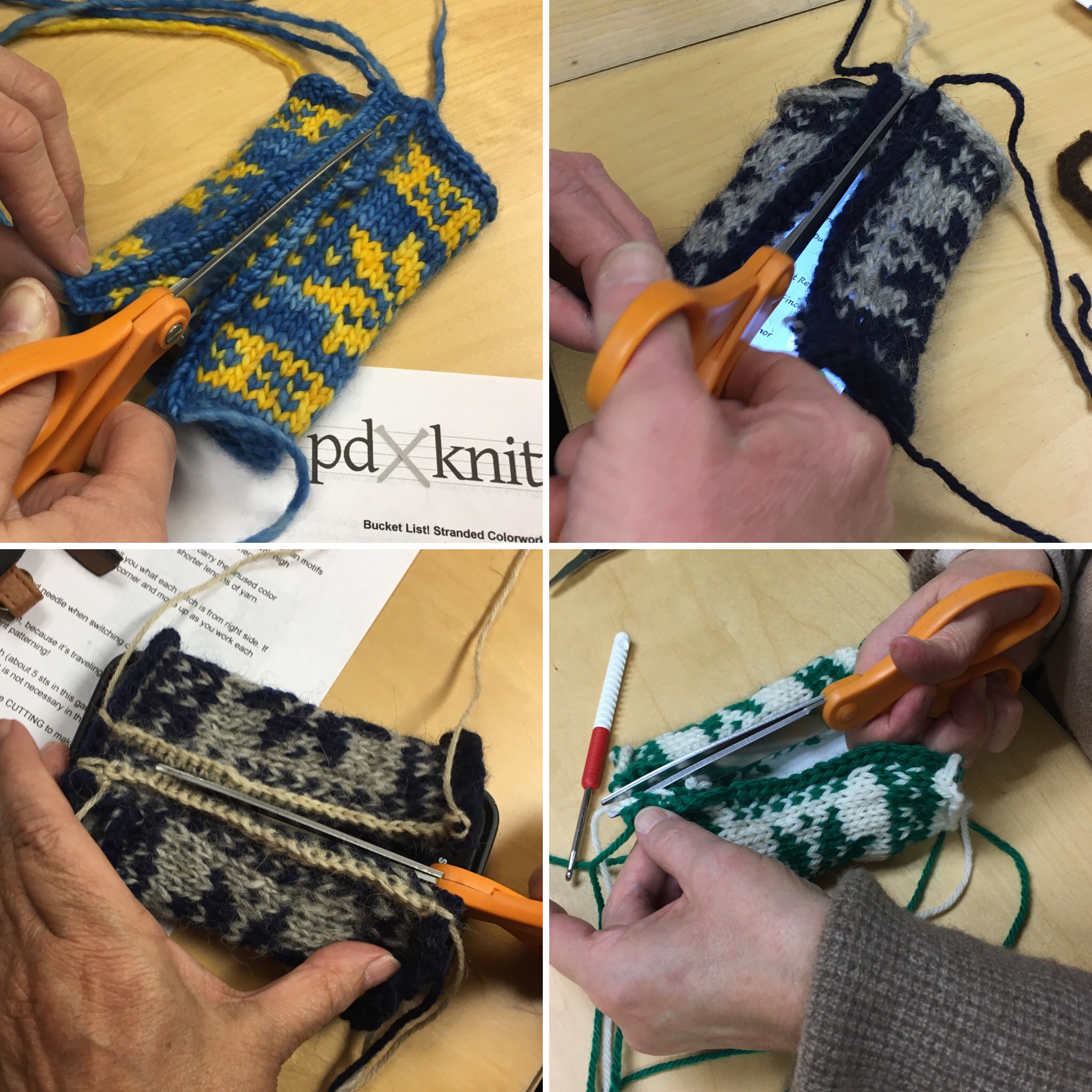 I took two classes at Madrona this year, and they were oddly related. The first was double knitting with Lucy Neatby. Double knitting involves working a double sided fabric that can look different on each side. The result is a squishy thick warm fabric.