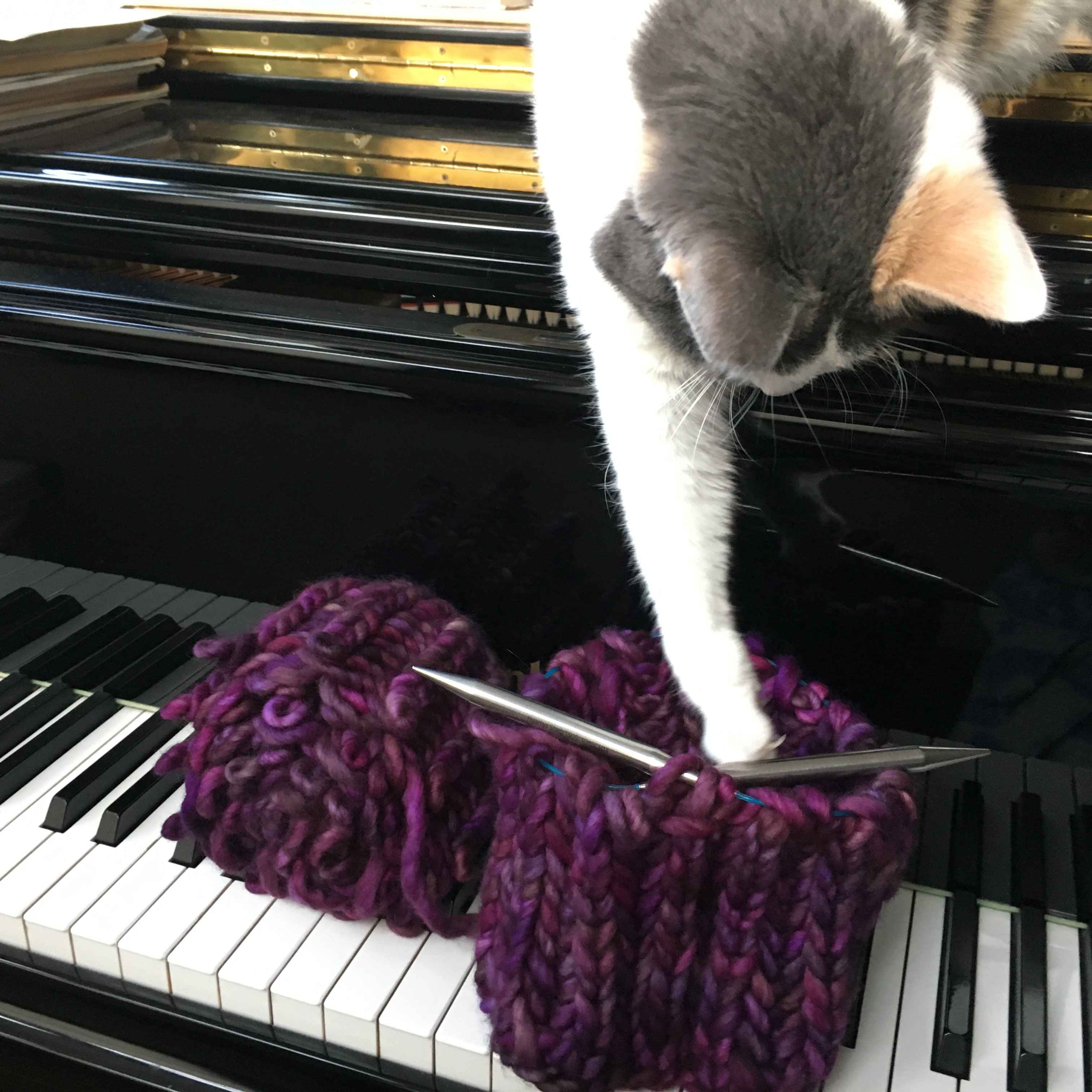 One side thing that was interesting was exploring how conventional purl stitches take more yarn than knit stitches, because the yarn travels diagonally across the needle instead of parallel to it. (Pythagorean theorem, hypotenuse!) This could cause your inside and outside fabrics to grow at different rates. In this case, using the Eastern combined knitting style would give a more even fabric and no “rowing out” on the purl rows. That makes sense.