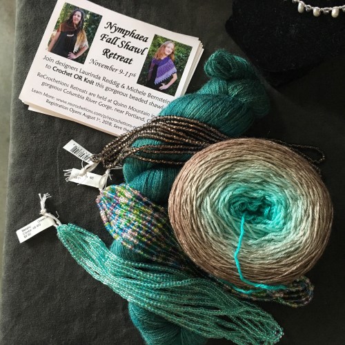 Side note: Laurinda and I are teaming up for a Nymphaea Fall Retreat, Nov. 9-11 in the Columbia River Gorge. Come knit or crochet your own beaded shawl with us! Details at this link.