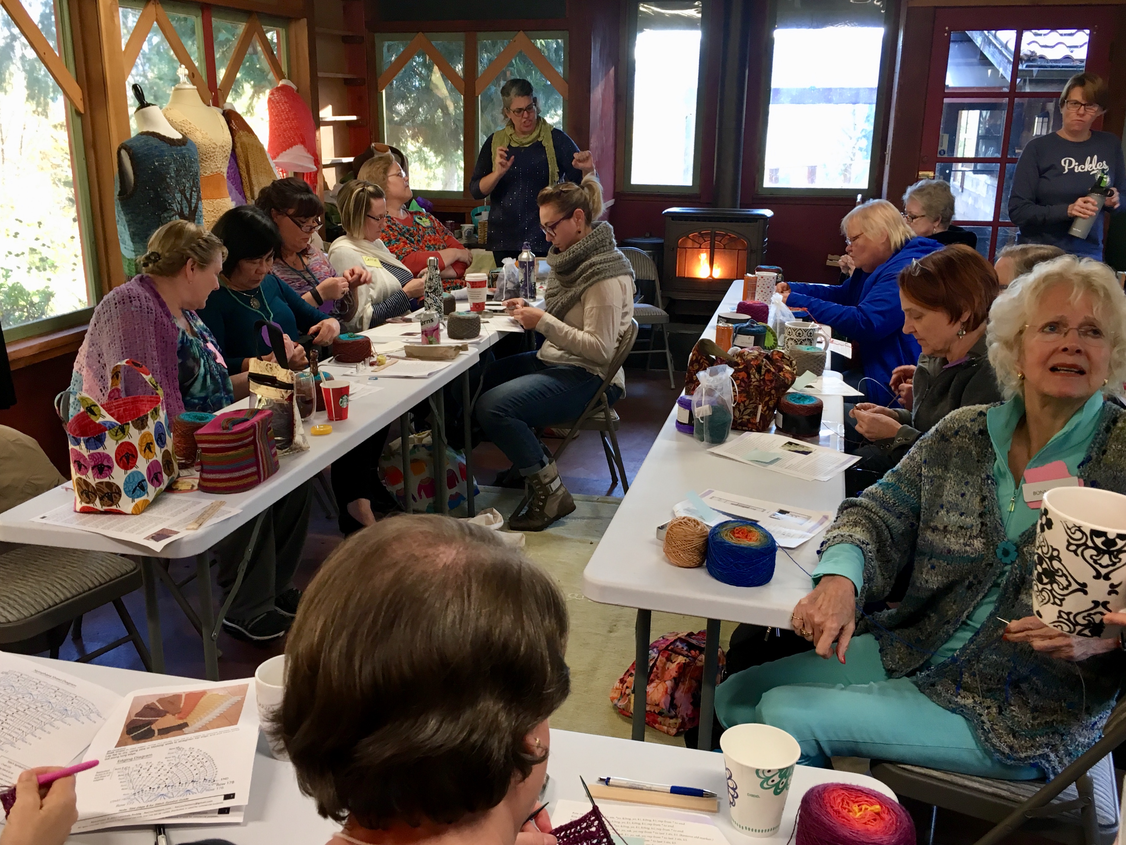 Our Nymphaea Fall Shawl Retreat was this past weekend, and it was a blast. We had knitters and crocheters playing with beads and yarn up at Quinn Mountain in the beautiful Columbia River Gorge. I wish I had more pictures, but it was a pretty busy weekend. The weather was perfect, too.
