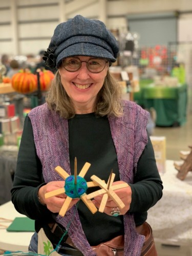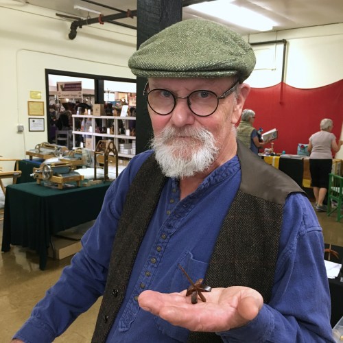 Wanda called me over in the market to show me Ed’s newest spindles, the Merlin (left). It has 6 legs, and it’s magical. The smaller one on the right is so new that it’s still being worked out. Ed Jenkins makes the loveliest Turkish spindles.