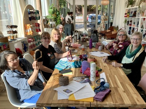 We went back in for the Minerva Entrelac class. The party trick in entrelac (besides the entrelac), is knitting back backwards without turning your work. It’s a great skill to have when your rows are only 8 stitches long!