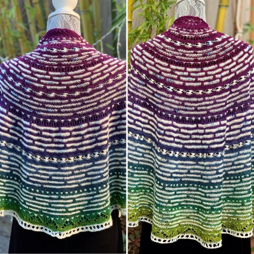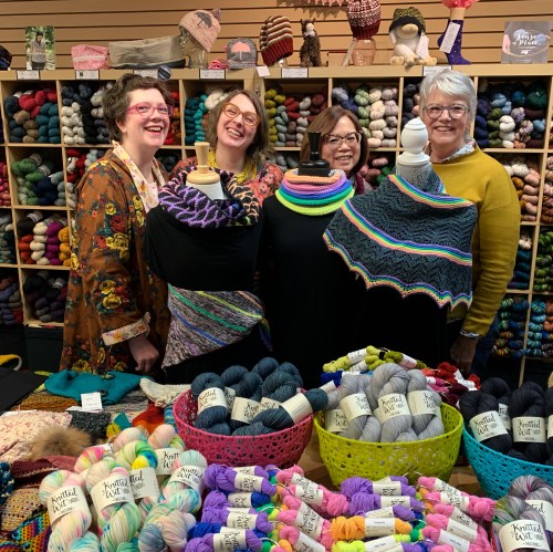 The Rose City Yarn Crawl is coming up next month, and I’m having a trunk show at For Yarn’s Sake! The crawl is virtual this year. You can visit the shops in person, but it’s not required for the crawl. I’m sending over my Half the Knit Sky knit with Huckleberry Knits gradient and MadTosh Twist Light. There *will* be kits, in two colorways. The gradient on this one is Practical Tactical Brilliance, and the other will be Made You Blush, an exclusive for For Yarn’s Sake.