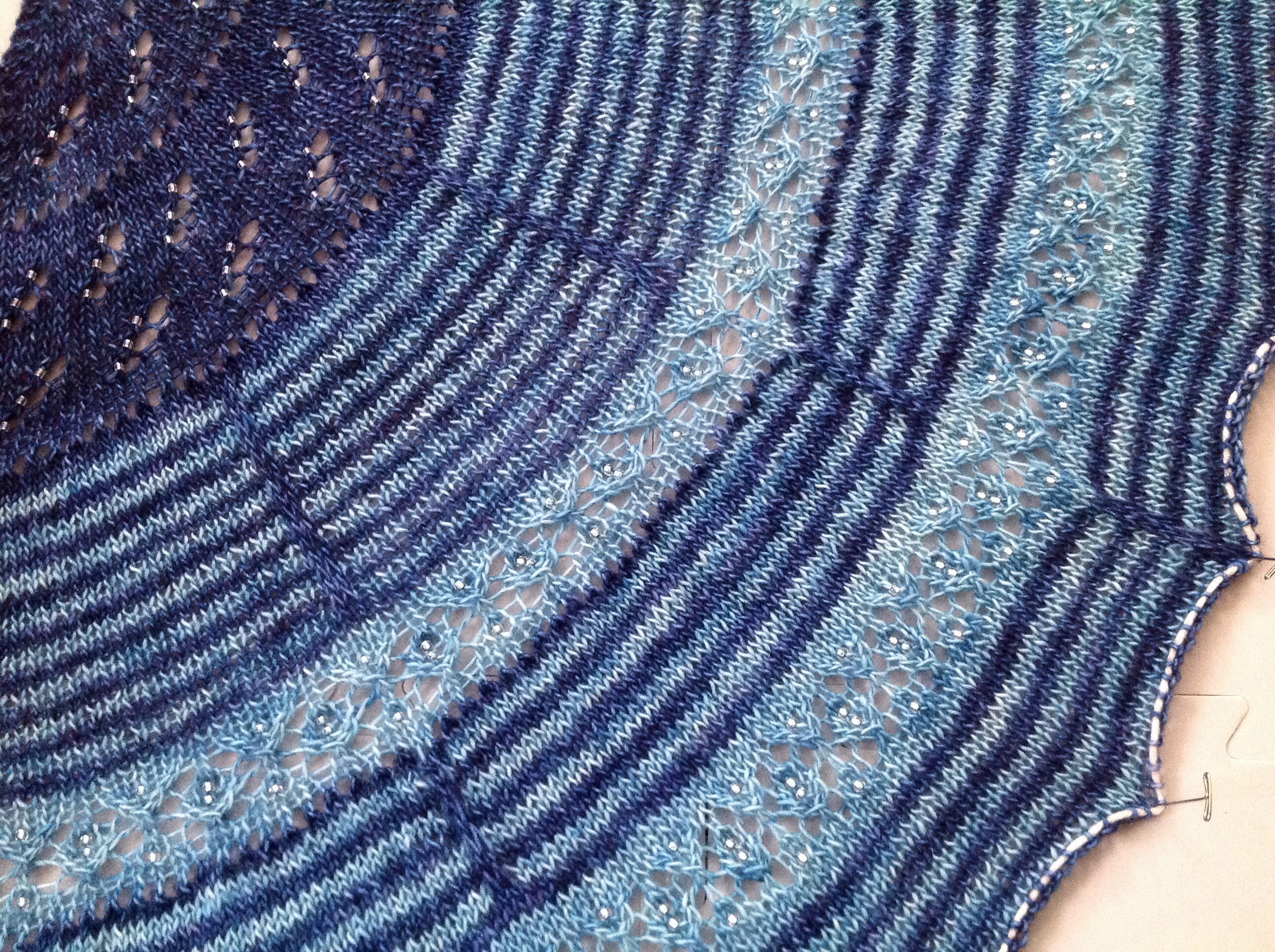 The new pattern includes instructions for enlarging the shawlette, and for optimum placement of beads. Lots of beads.