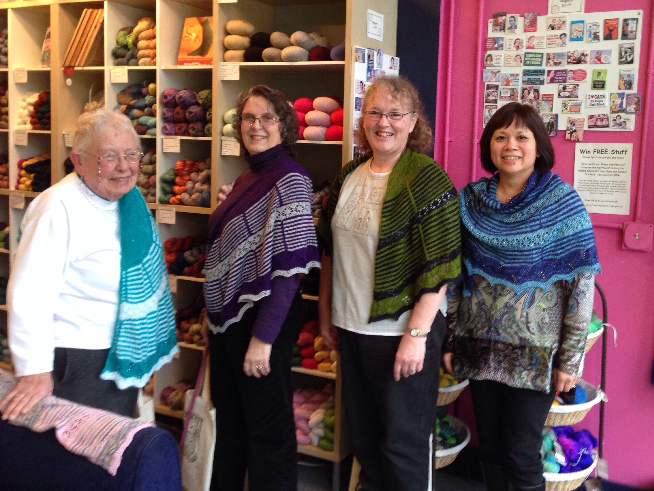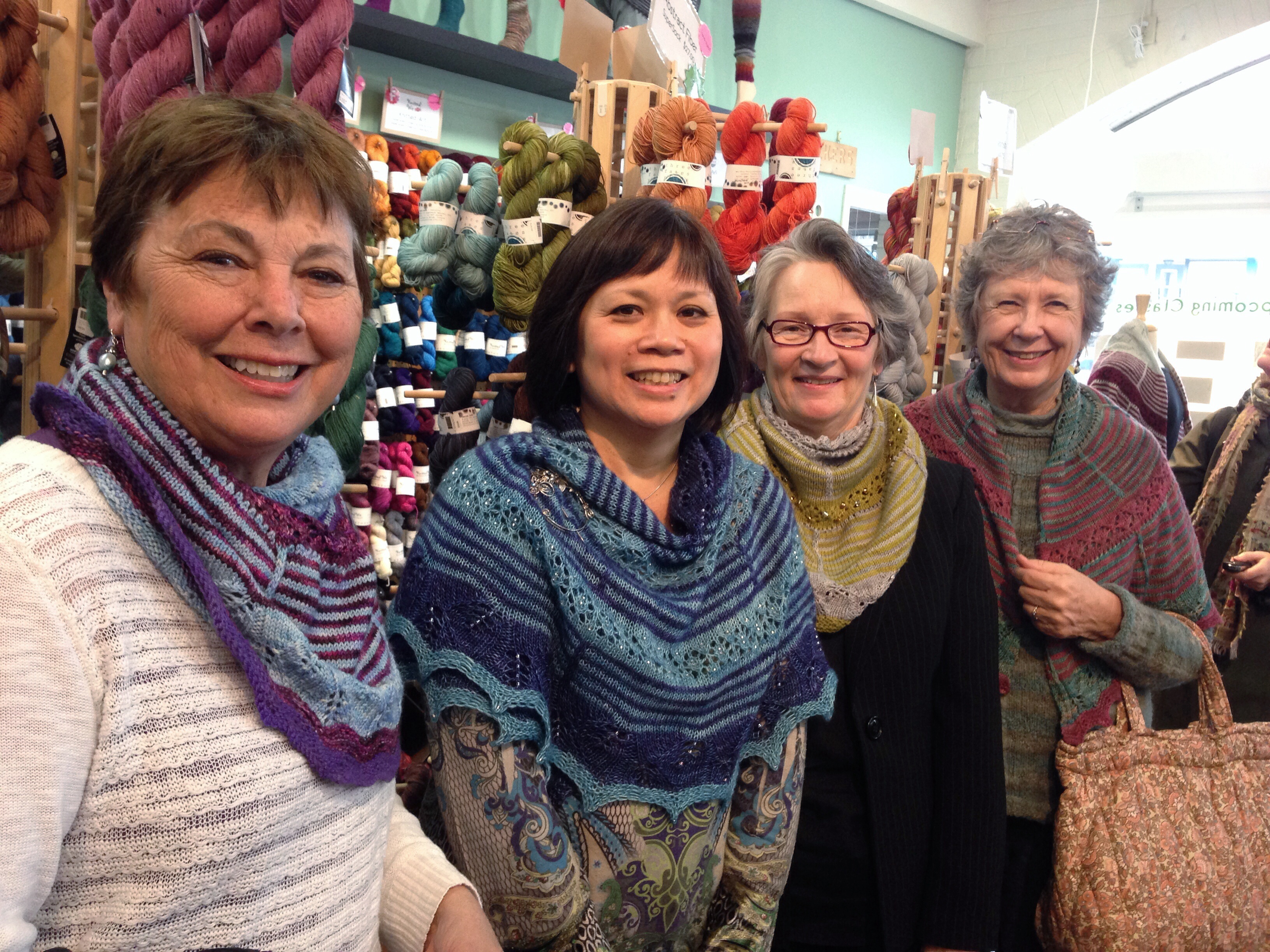 The first completed shawlettes from the Rose City Yarn Crawl Mystery Knit Along are rolling in. You can see them in the Ravelry project pages here.