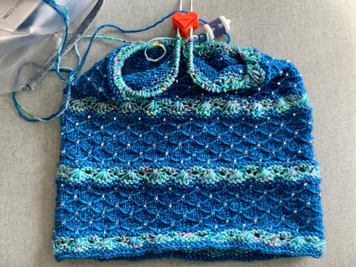 Things are going along swimmingly. I’ve just started the third color. I knew I that I might regret not ripping every time I looked at my cowl, but I’d never regret having ripped and having my colors change at the garter ridges.