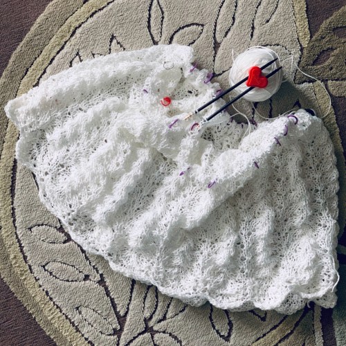 Blocking is magic! A reminder of how it looked, just off the needles. Now it’s airy and perfect.