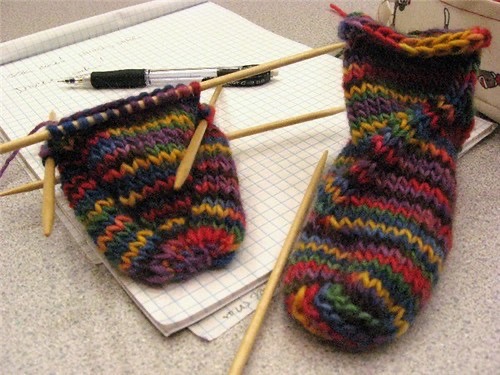 I know this is not the world’s most exciting swatch, but hey, I’m just trying to get the technique down without splitting the yarn!