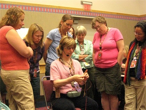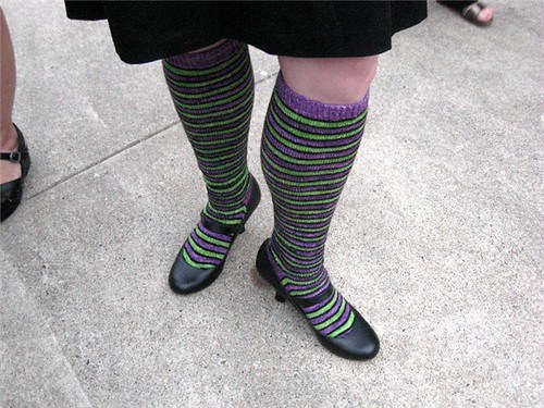 My friend Anna and I had a three hour class in the morning with Star Athena, Sock Design Workshop: Know the Rules, then Break Them. This was a great class. Star is a big fan of the gauge swatch; she says that they don’t lie. I still think mine do, but I’ll keep making them. I usually make design decisions by trial and error, and keep ripping back if I don’t like what I have. I hadn’t really thought about making a long continuous swatch before, but it’s a great idea. We also went over different ways of approaching design, and worked on designs of our own. Star also went over different avenues to publishing (magazines, books, internet, self-publishing). I came out of class with several design ideas and am happy I took the class. Thanks, Star!
