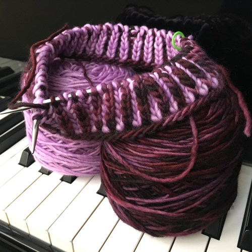 I love it. Which meant I had to frog and re-knit the first cowl. And that’s how I’ve knit three cowls with these two skeins of yarn. I re-knit the Irresistible Orchid cowl in 3 days. Don’t try this at home; my arms are definitely feeling some tendinitis. Oops. But I did binge watch the current season of Virgin River on Netflix, so that was fun.