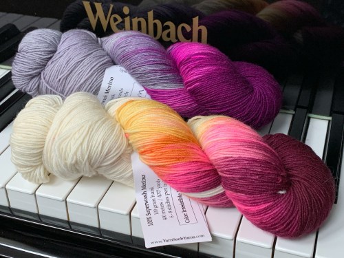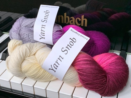 I’m planning to make a sample of my Starfall cowl with Keith Leonard’s fingering weight Yarn Snob yarn. I love his yarns for assigned pooling. We’re planning to do kits.