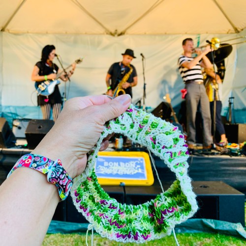 Do you knit when it’s hot? It’s always nice indoors here! But I did knit outdoors at the festival, too. At least it was a small, not very woolly project!