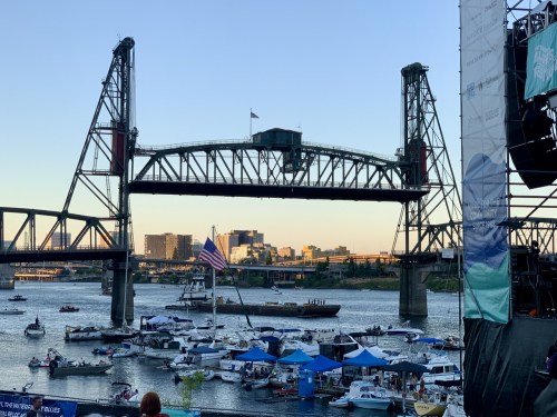 Local great Curtis Salgado and 11 more fabulous musiciansHawthorne Bridge lift for the fireworks barge to get throughDoing our part! (We take this picture every year)