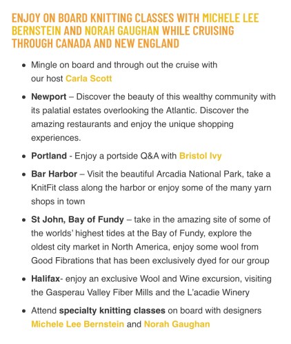 We met Michelle in Bar Harbor, Maine, a stop on our Vogue Knitting Cruise. She told us all about Knit Fit, and then we walked, knitting, to La Rochelle for a tour of this lovely mansion.
