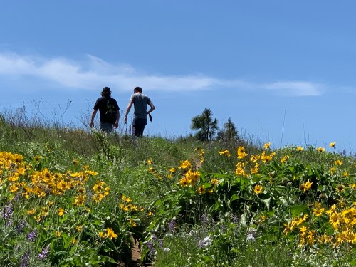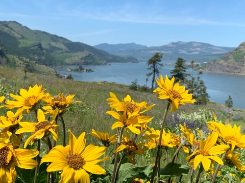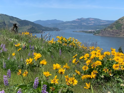 Last week (May 7), I went on a wildflower walk in the Columbia River Gorge, on the other side of the Cascade Mountains. That’s the dry side. I was enticed by the pictures of balsamroot in my Facebook feed.