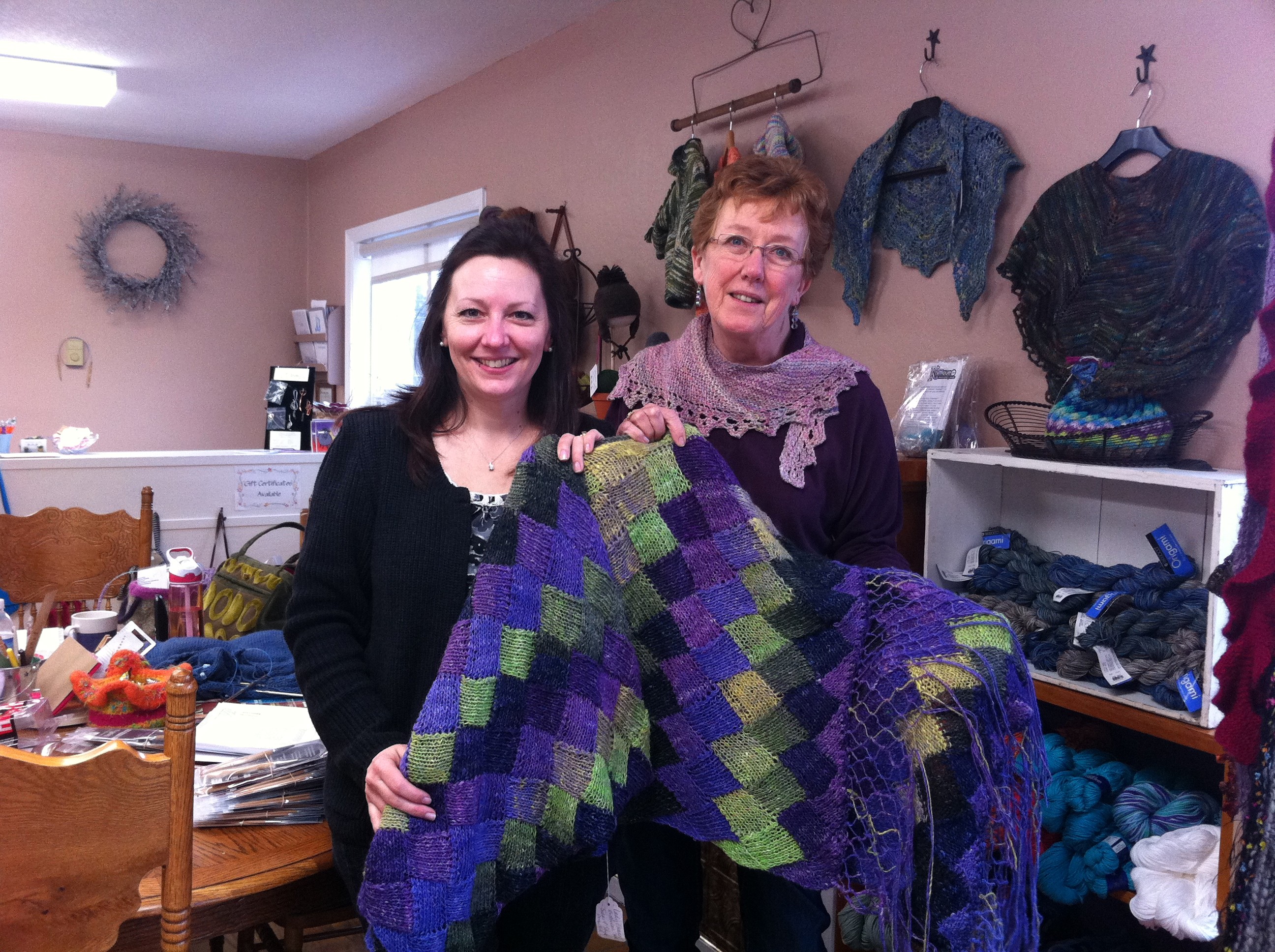 Last week I went to Wool ‘N Wares in West Linn to visit with owners Karen Schellinkhout and Vickee Cosentino. I needed to deliver a pattern order, and since I’d never been there, I thought it would more fun to deliver them in person. The shop is cute, brightly lit and well-stocked.