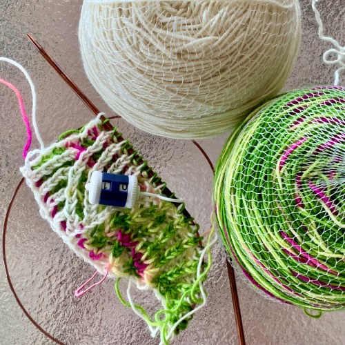 Bellini Bubbles is nearly done with test knitting, and I am seeing some stunning colors. Assigned pooling is so much fun! I’m planning to publish this next week, May 21. Get your yarn ready!