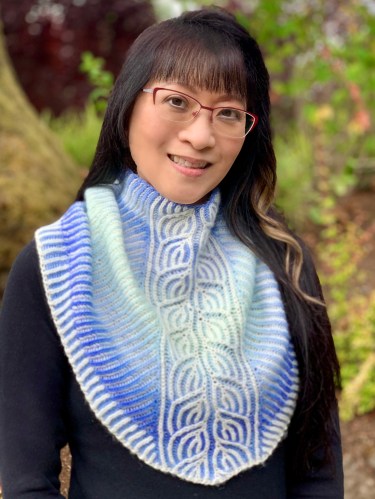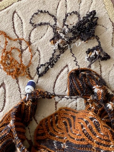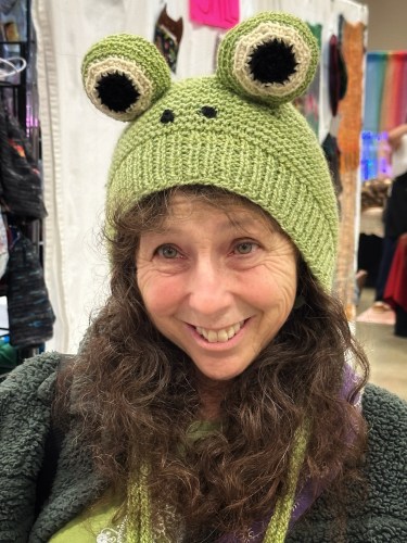 Karen’s frog hat is fabulous! I was going to use the green worsted for a brioche beanie and add eyes, but I really like the shaping on this one. We shall see…this pattern is Frog Hat by Annanitato Lolo, available on Ravelry. The eyes are crocheted.
