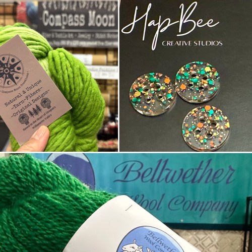 Yarns for frog hats, and some sweet buttons for a baby sweater.