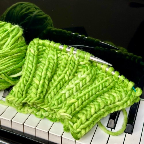 How do you start knitting a frog hat? Rib it! Rib it! 🐸 This super bulky is knitting up quickly on US 15 needles. I’m riffing off Pussy Hat for 4 gauges by Sarah Keller, pattern free on Ravelry. I’ll add buttons and felt for eyes.